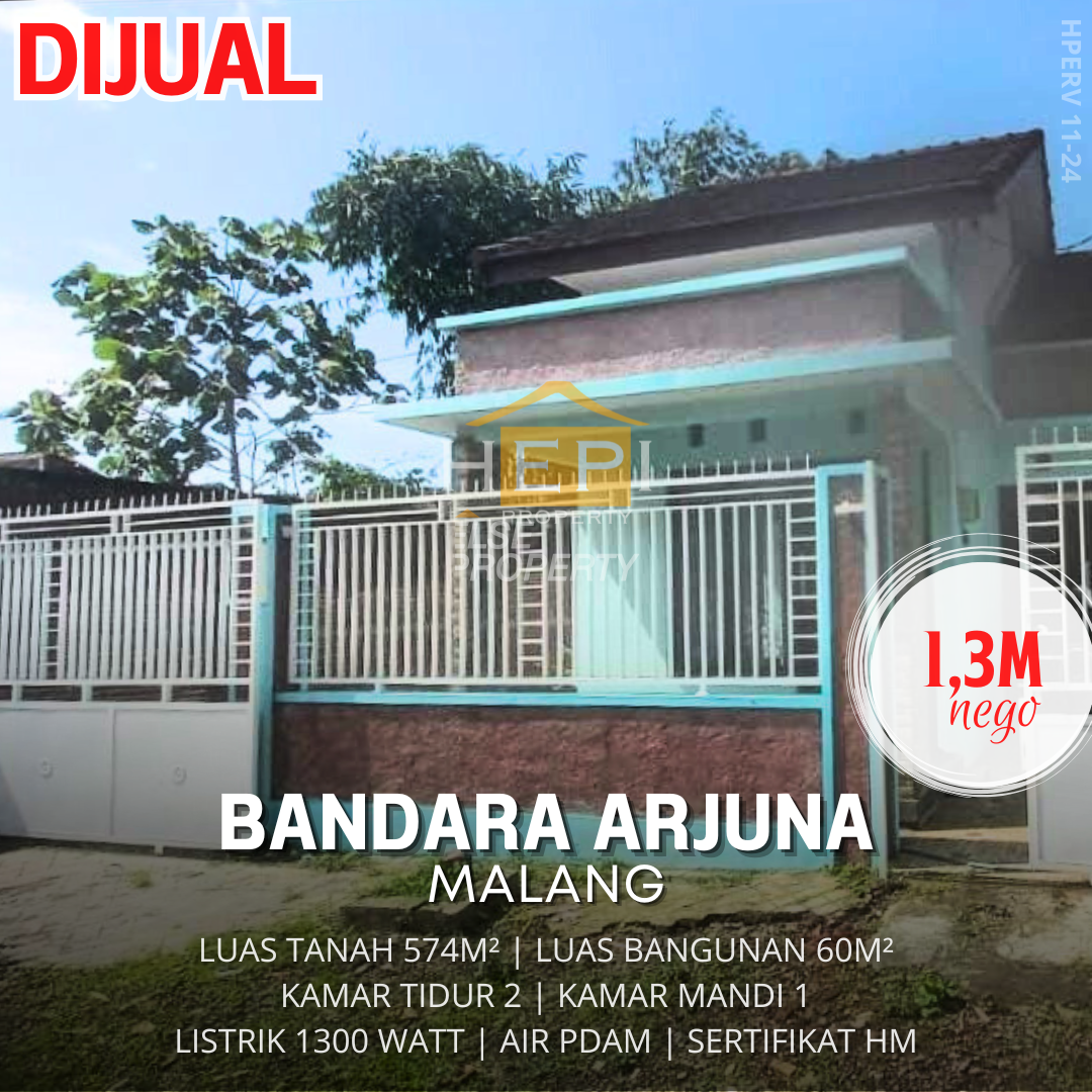 Tanah 574m² Luas Bangunan 60m² Kamar Tidur 2 Kamar Mandi 1 Listrik 1300 watt Air PDAM Sertifikat HM