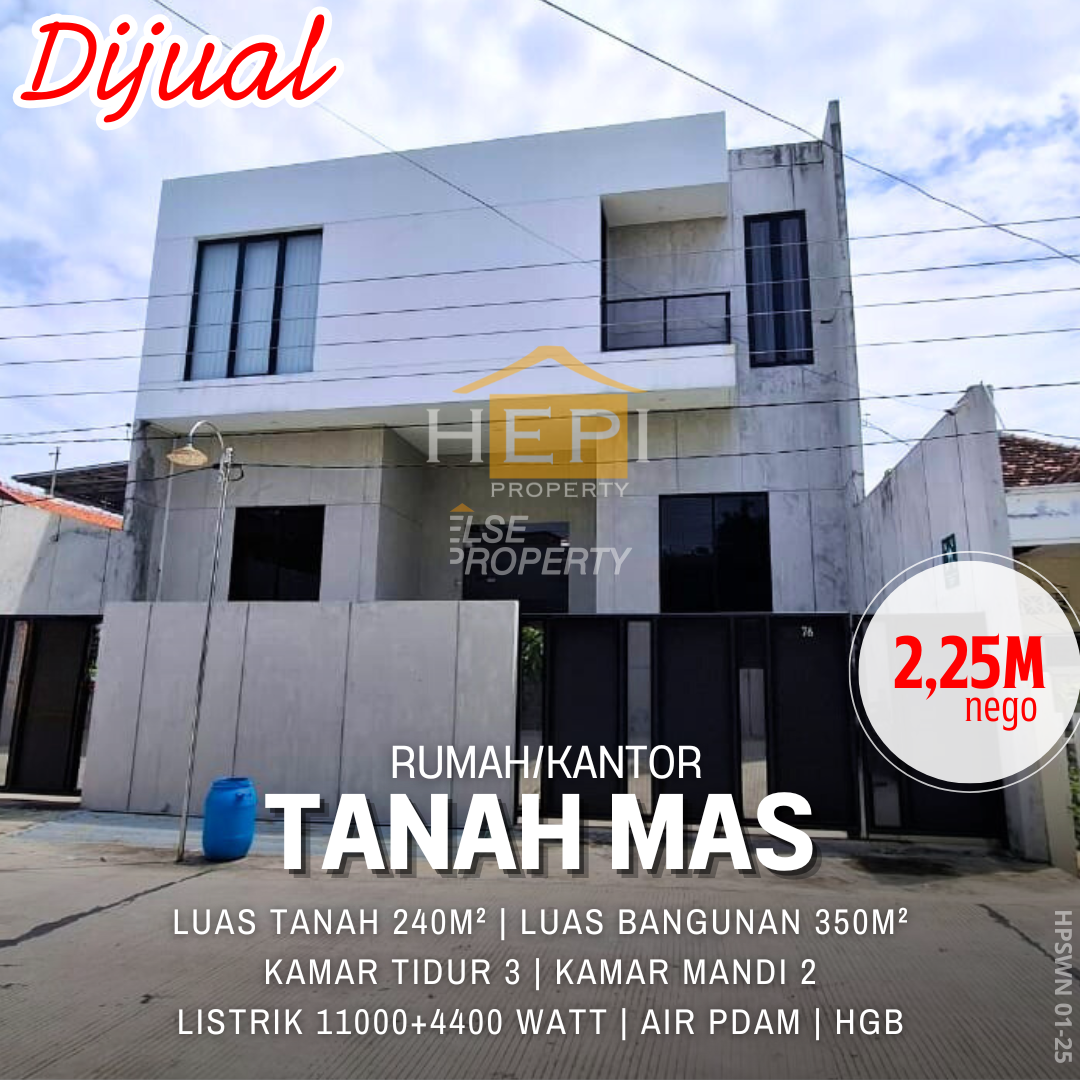 Luas Tanah 240m² Luas Bangunan 350m² Kamar Tidur 3 Kamar Mandi 2 Listrik 11000+4400 watt Air PDAM Sertifikat HGB
